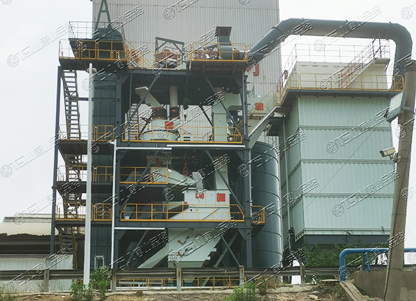 原料經(jīng)過電子秤進(jìn)入到皮帶輸送機(jī)中,由全封閉的提升機(jī)將物料入到五孔碾磨制砂機(jī)內(nèi)進(jìn)行破碎處理,再由空氣篩對(duì)破碎后的物料進(jìn)行篩分、選粉處理,篩分后的較大物料會(huì)返回五孔碾磨制砂機(jī)中進(jìn)行二次破碎,符合要求的砂子則由傳送帶輸送至成品倉(cāng)中;篩分過程中的粉塵會(huì)經(jīng)粗細(xì)粉分離機(jī)進(jìn)入到布袋收塵器內(nèi),而其中較大的粗顆粒會(huì)在粗細(xì)粉分離機(jī)的作用下,按需求在成品砂中進(jìn)行回?fù)?,?xì)粉塵將通過風(fēng)力進(jìn)入到布袋收塵器,作為副產(chǎn)品進(jìn)行使用。